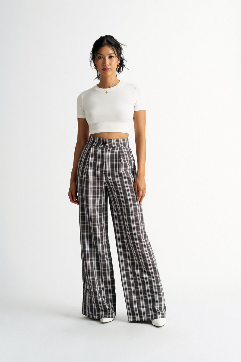 Sport a chic preppy look with the Only Want You Plaid Wide Leg Pants in Black Multi. These wide leg pants feature two front pockets and a front button & zipper closure. Bonus: pair these plaid pants with the Only Want You Plaid Button Cami Crop Top and a blazer for a girlboss outfit to wear in the office. Look like a girlboss during all of your meetings in these wide leg plaid pants.
